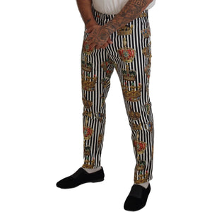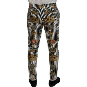 تمتع بالرقي الذي لا ينضب مع بنطال تشينو الرائع من دولتشي آند غابانا. تم تصميم هذه السراويل لتحقيق الكمال، فهي أكثر من مجرد قطعة ملابس؛ انهم بيان الاسلوب. يتميز النمط المخطط باللونين الأبيض والأسود المذهل بطبعة تاج ذهبية جذابة، مما يجعلها مزيجًا مثاليًا من الأناقة العصرية والسحر الملكي. سواء كنت تحضر حدثًا رسميًا أو ترتدي ملابس لنزهة راقية، فإن هذا البنطلون يعدك بأنك ستفعل ذلك مع جو من الفخامة الراقية.