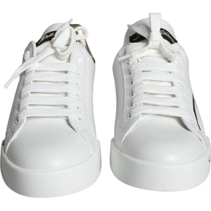 حذاء رياضي جلدي منخفض الارتفاع من Dolce & Gabbana باللون الأبيض الذهبي Portofino