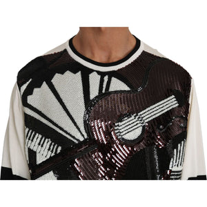 اكتشف مثال الملابس المحبوكة الفاخرة مع هذه السترة الحريرية المذهلة من Dolce & Gabbana New York Jazz. رمزًا للحرفية والأناقة الراقية، تتميز هذه السترة ذات الرقبة الدائرية بتصميم لافت للنظر مع قاعدتها باللونين الأبيض والأسود التي يرتفعها نمط مطرز متعدد الألوان مفعم بالحيوية، مما يتناغم مع الأجواء الديناميكية لموسيقى نيويورك جاز. انغمس في الراحة والأناقة التي توفرها هذه السترة الإيطالية الصنع، التي يجب اقتناؤها لأولئك الذين يقدرون الموضة كشكل من أشكال الفن.