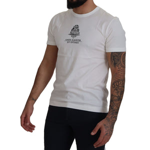 تي شيرت قطني مطبوع عليه شعار دولتشي آند غابانا باللون الأبيض الأنيق