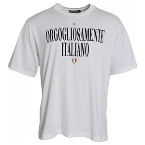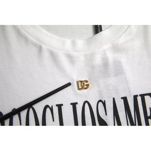تي شيرت دولتشي آند غابانا أبيض من القطن برقبة دائرية وأكمام قصيرة