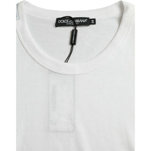 تي شيرت دولتشي آند غابانا أبيض بشعار دولتشي آند غابانا وياقة دائرية وأكمام قصيرة