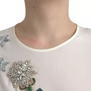 بلوزة رائعة جديدة تمامًا مع العلامات التجارية، 100% أصلية من دولتشي آند غابانا بأكمام 3/4 مع زخارف. مصنوعة من الحرير.