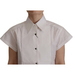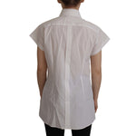 قم بإثراء خزانة ملابسك بمثال للرقي - بلوزة رائعة جديدة تمامًا بدون أكمام من تصميم دولتشي آند غابانا الشهيرة. تم تصميم هذا القميص المصمم بدقة من القطن الفاخر بنسبة 100%، مما يضمن الراحة والمتانة. البلوزة البيضاء مزينة بأزرار كريستالية سوداء مذهلة، مما يضيف لمسة من التألق إلى مجموعتك. تم تصميمه بعناية في إيطاليا، وهو يعكس التزام العلامة التجارية بالجودة والأناقة التي لا مثيل لها.