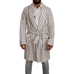 معطف دولتشي آند غابانا من القطن الأبيض المخطط مع سترة ملفوفة