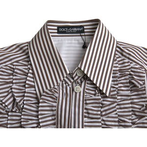 بلوزة دولتشي آند غابانا بيضاء مخططة من القطن بأكمام طويلة وياقة مكشكشة