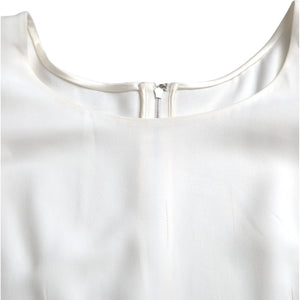 بلوزة دولتشي آند غابانا باللون الأبيض من الفيسكوز بياقة دائرية وأكمام قصيرة