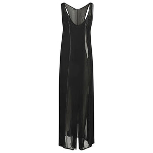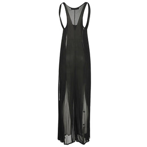 Abito lungo nero senza maniche, semitrasparente, scollo a U. Long tank dress Size and Fit - This piece fits true to size. We recommend you get your regular size. Model is 1,75m / 5ft 8in wearing size 36 (FR)