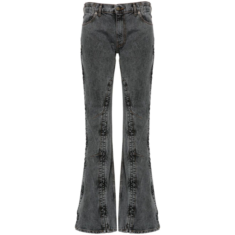 black faded effect organic cotton denim belt loops at the waist classic five pockets logo patch to the rear hook and eye detailing internal logo tag bootcut front button and zip fastening Evergreen hook and eye slim denim jeans Size and Fit - This piece fits true to size. We recommend you get your regular size. Model is 1,75m / 5ft 8in wearing size 27 (WAIST CM)