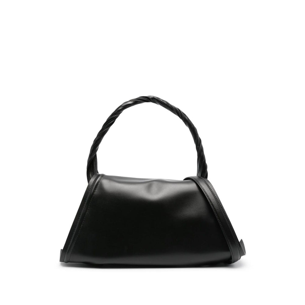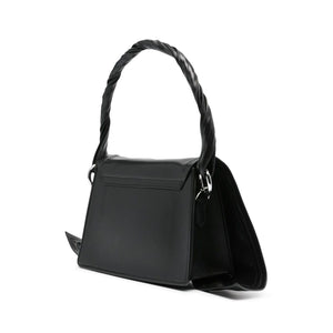 black leather smooth grain single twisted top handle adjustable shoulder strap silver-tone logo lettering main compartment internal patch pocket internal logo stamp suede lining foldover top This piece comes complete with a protective dust bag. Wire leather handbag Size and Fit - Width 9,06 in / 23 cm