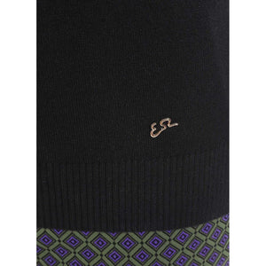 Yes Zee turtleneck sweater in soft stretch viscose blend yarn with lurex work, ribbed hems and cuffs, and logo tag at bottom