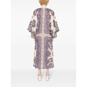 beige/multicolour linen/flax slub texture kaftan silhouette paisley print round split neck long wide sleeves side slits unlined straight hem This item contains at least 50% materials which are certified or widely recognised as having a lower environmental impact through production and/or manufacturing processes that reduce water consumption and the use of harmful chemicals, or re-use by-products of the production process. Learn more about what makes a product Conscious on our Conscious Criteria page Paisley print linen midi dress Size and Fit - This piece fits true to size. We recommend you get your regular size. Model is 1,75m / 5ft 8in wearing size 1 (NUM)