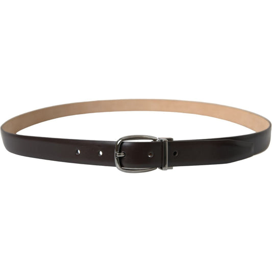 Dolce & Gabbana Dark Brown Leather Silver Metal Buckle Belt