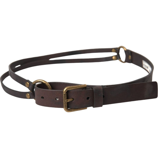 Dolce & Gabbana Dark Brown Leather Gold Metal Buckle Women Belt