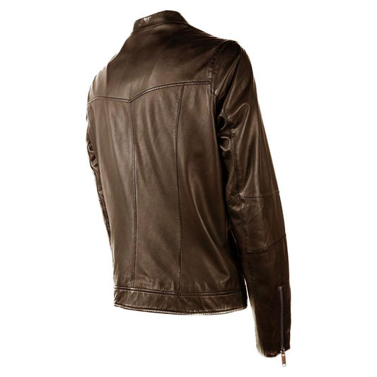 Emilio Romanelli Brown Calfskin Men Bomber Jacket
