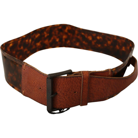 Ermanno Scervino Brown Leather Wide Bronze Buckle Waist Belt