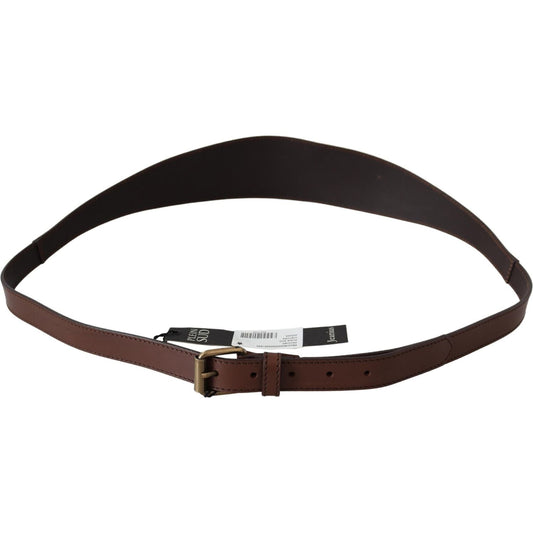 PLEIN SUD Brown Leather Gold Metal Buckle Belt