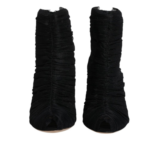 Dolce & Gabbana Black Mesh Stiletto Heels Ankle Boots Shoes
