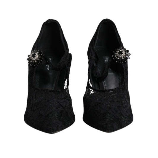 Dolce & Gabbana Black Lace Crystals Mary Jane Pumps Shoes