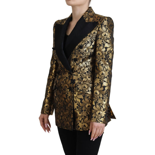Dolce & Gabbana Black Gold Jacquard Coat Blazer Jacket