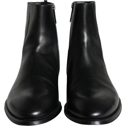 Dolce & Gabbana Black Leather Ankle Boots Booties Shoes