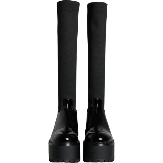 Dolce & Gabbana Black Leather Jersey Knee High Boots Shoes