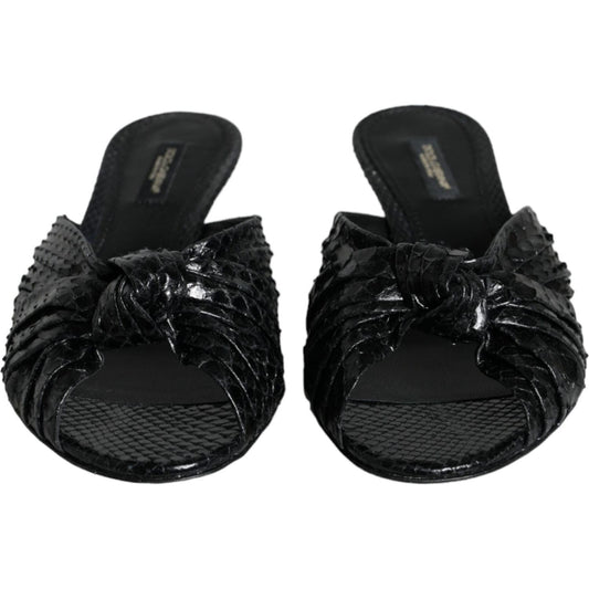 Dolce & Gabbana Black Leather Heels Slides Sandals Shoes