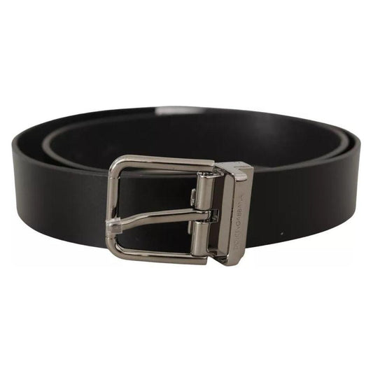 Dolce & Gabbana Black Calf Leather Logo Engraved Metal Buckle Belt