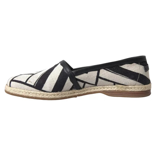 Dolce & Gabbana Black White Stripes Slip On Espadrille Shoes
