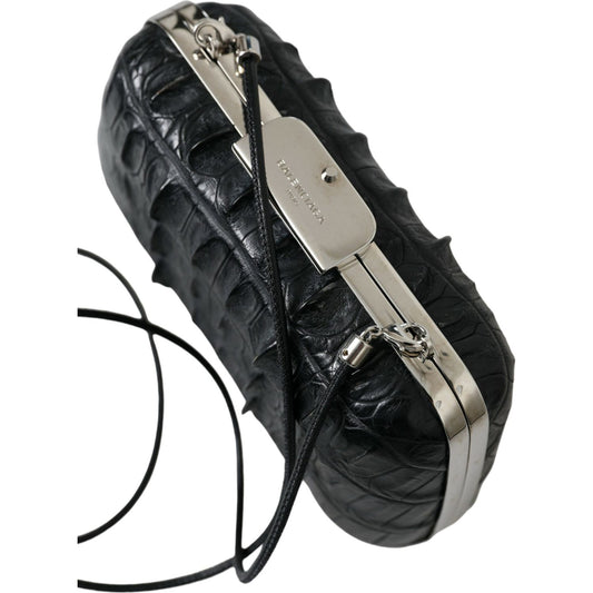 Balenciaga Black Exotic Skin Leather Shoulder Crossbody Box Clutch Bag