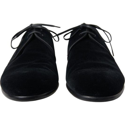 Dolce & Gabbana Black Velvet Lace Up Formal Derby Dress Shoes