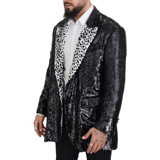 Dolce & Gabbana Black Sequined Cow Pattern Nylon Blazer