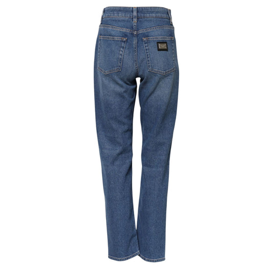 Dolce & Gabbana Blue Cotton High Waist Tapered Denim Jeans