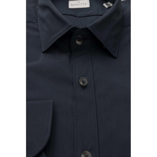 Bagutta Blue Cotton Men Shirt Slim Fit with French Collar