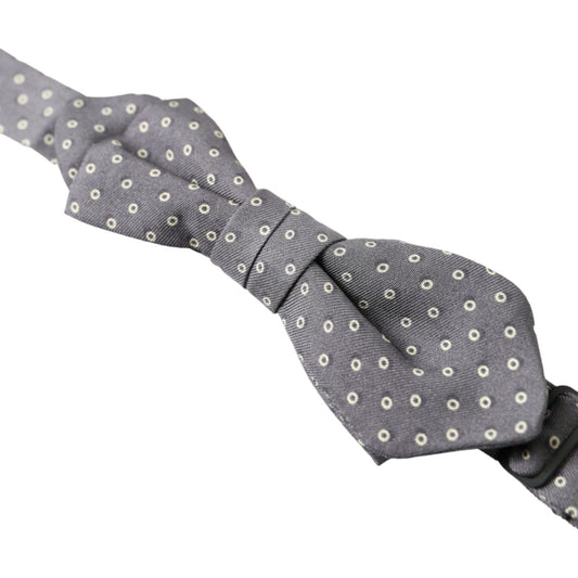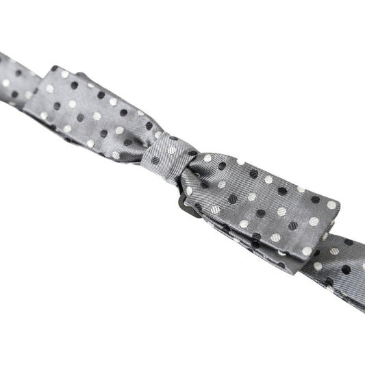 Dolce & Gabbana Gray Dotted Silk Adjustable Men Neck Papillon Bow Tie