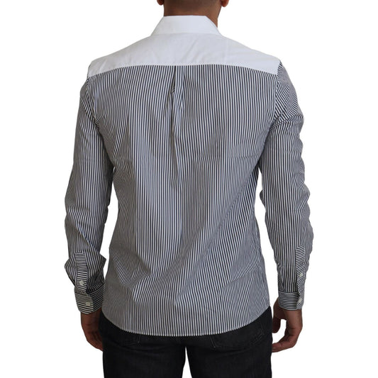 Dolce & Gabbana Gray White Striped Slim Fit Shirt