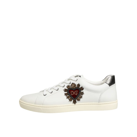 Dolce & Gabbana White Leather Heart Embellished Sneakers Shoes