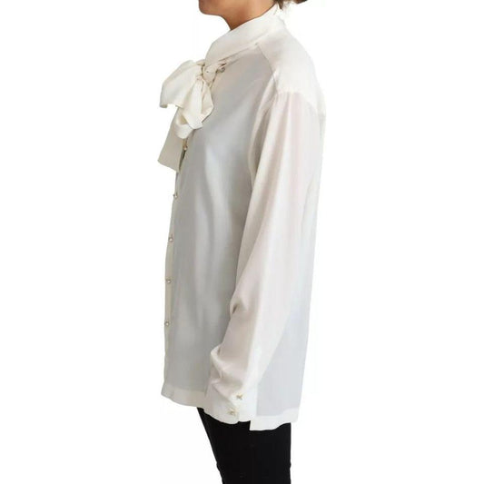 Dolce & Gabbana White Ascot Collar Long Sleeves Blouse Top