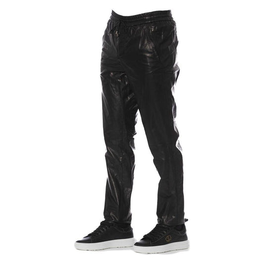 Trussardi Sleek Black Leather Trousers for Men