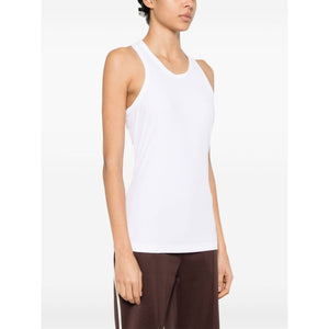 white recycled polyamide blend fine ribbed crew neck sleeveless logo print to the side racerback internal logo tag straight hem This item is made from at least 50% recycled or upcycled materials. For recycled synthetic clothing products, we highly recommend using a microfibre-catching washing bag to ensure that no microplastics that can pollute water are released in the process. We've partnered with Good On You — an independent agency that rates how brands perform in relation to their impact on the planet, people and animals, with a multi-criteria rating simplified to a five points scale. In order to be awarded our conscious label, larger brands need to score a minimum of four out of five ('Good'), while smaller brands must score at least three out of five ('It's a start'). This item comes from a brand rated four out of five ('Good') by Good on You at the time it was added on FARFETCH. Please note, this is a brand-level rating and does not guarantee that this product is made with cons Logo ribbed tank top Size and Fit - This piece fits true to size. We recommend you get your regular size. Model is 1,75m / 5ft 8in wearing size S