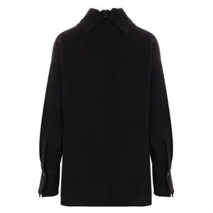 black crepe texture cowl neck drop shoulder long sleeves buttoned cuffs concealed rear zip fastening side slits curved hem High-neck jumper Size and Fit - This piece fits true to size. We recommend you get your regular size. Model is 1,75m / 5ft 8in wearing size 40 (IT)