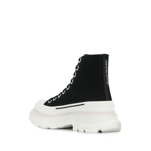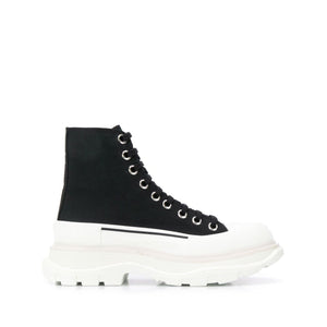 Nothing puts a spring in your step like a brand new pair of shoes. You'll look for every excuse to wear these lace-up chunky trainers from Alexander McQueen. With a platform rubber sole, they'll give you a much-needed boost as well! Featuring a front lace up detail, a platform sole, an ankle length and a rubber sole. Tread Slick ankle boots Size and Fit - Heel 2 in / 5 cm
