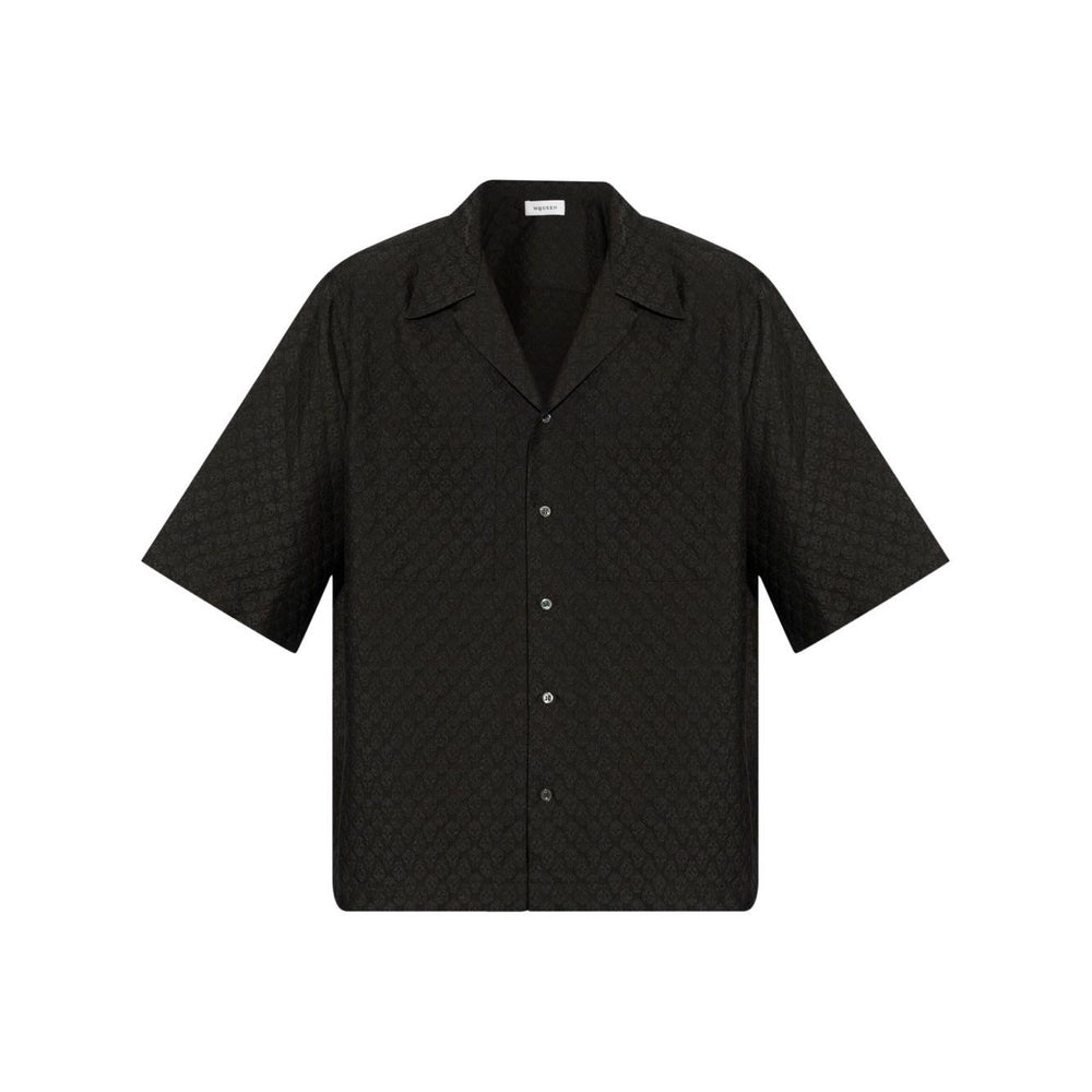 black front button fastening chest patch pocket short sleeves Skull print shirt Size and Fit - This piece fits true to size. We recommend you get your regular size. Model is 1,84m / 6ft 1in wearing size 15 ½ (SHIRT IN)