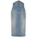 indigo blue short front zip fastening two rear patch pockets Denim long skirt Size and Fit - This piece fits true to size. We recommend you get your regular size. Model is 1,75m / 5ft 8in wearing size 40 (IT)