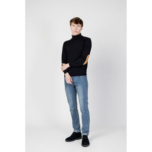 The Alviero Martini Prima Classe men’s turtleneck sweater U 3401 UI70 is an elegant and versatile knitwear piece, ideal for those seeking a refined look for both casual and formal occasions. Crafted from a blend of 50% viscose and 50% polyester, it offers a soft feel on the skin and an excellent fit. The high neckline provides warmth and adds a sophisticated touch to your outfit. Unique elbow patches in faux leather with the iconic Geo print, a signature of Prima Classe, enhance the design. The regular fit ensures comfort and freedom of movement, making this turtleneck a must-have for the autumn-winter season. Perfect to pair with jeans or dress trousers, it is the ideal choice for those who appreciate a sophisticated and distinctive style.