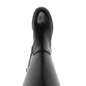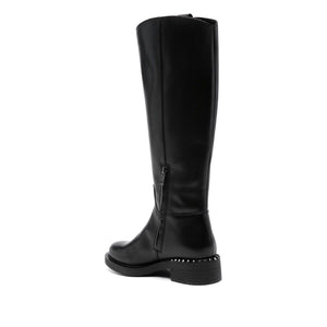 Faith leather boots from ASH featuring black, calf leather, silver-tone Rockstud detailing, almond toe, knee-high and flat rubber sole. Faith leather boots Size and Fit - Heel 1,6 in / 4 cm; Platform 0,8 in / 2 cm
