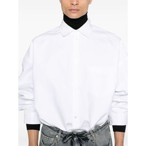 white cotton classic collar chest patch pocket drop shoulder long sleeves press-stud fastening cuffs two side slit pockets curved hem front press-stud fastening When buying this unisex item, keep in mind that it is graded in standard men's sizing. Oversized cotton shirt Size and Fit - SLEEVE LENGTH: 92.0 Centimetres. LENGTH: 95.0 Centimetres.