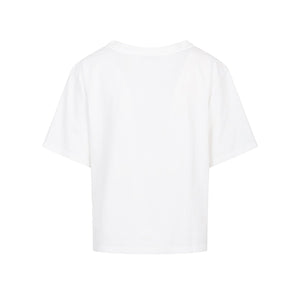 White T-shirt, half sleeves, crew neck, straight hem. Cotton t-shirt Size and Fit - This piece fits true to size. We recommend you get your regular size. Model is 1,75m / 5ft 8in wearing size 40 (IT)