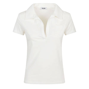 White polo shirt, half sleeves, patch pocket on the chest, straight hem. Cotton polo shirt Size and Fit - This piece fits true to size. We recommend you get your regular size. Model is 1,75m / 5ft 8in wearing size 40 (IT)