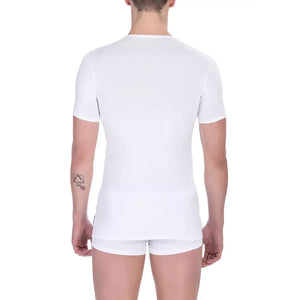 Step out in suave, Bikkembergs sophistication with the perfect blend of comfort and style. This Crew Neck T-shirt is a testament to refined casual wear. Its cotton-elastane blend ensures a form-fitting silhouette that moves with you, while the pristine white hue acts as a versatile canvas for any fashion-forward ensemble. A symbol of understated luxury, this piece is a must-have for a wardrobe that speaks volumes without saying a word.